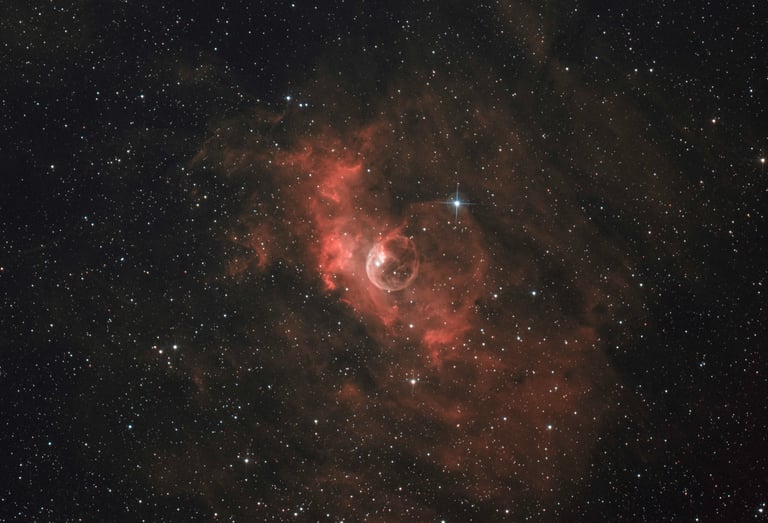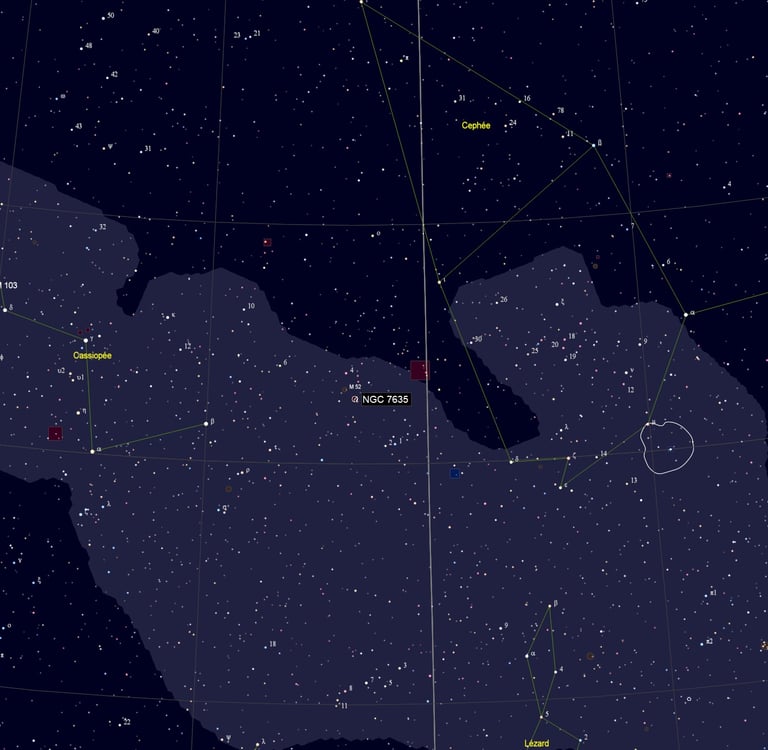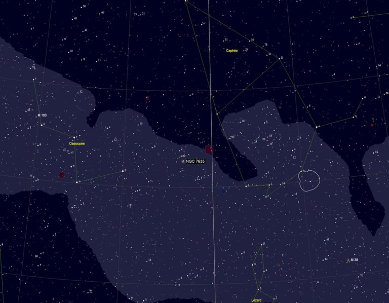 NGC 7635, également connue sous le nom de nébuleuse de la Bulle, est une nébuleuse d'environ 10 années-lumière de diamètre située dans la constellation de Cassiopée. Elle est composée d'hydrogène ionisé, c'est une région HII.