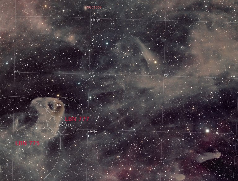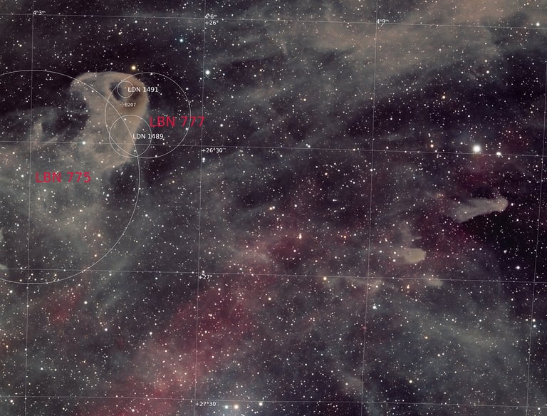 LBN 777, aussi appelée "Baby Eagle Nebula", est encore un parfait exemple de paréidolie, qui pousse notre cerveau à associer ce nuage de poussière à une forme connue (ici, une tête d’oiseau).