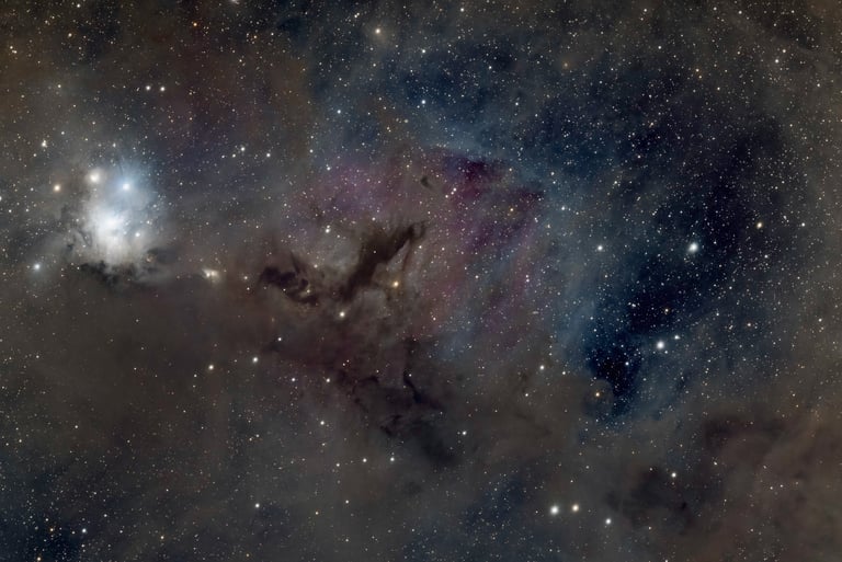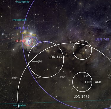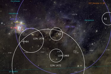 Voici une zone regroupant beaucoup d'objets intéressants (catalogues LBN ,LDN ,Barnard, IC...) qui sont peu souvent photographiés.