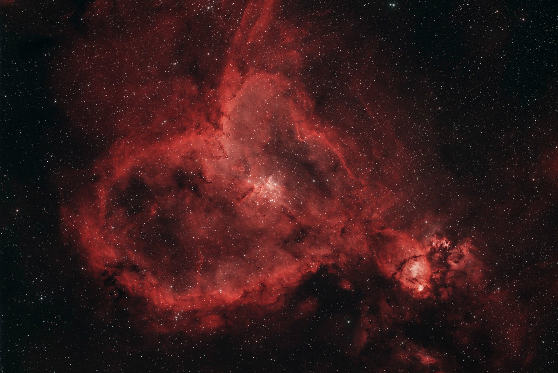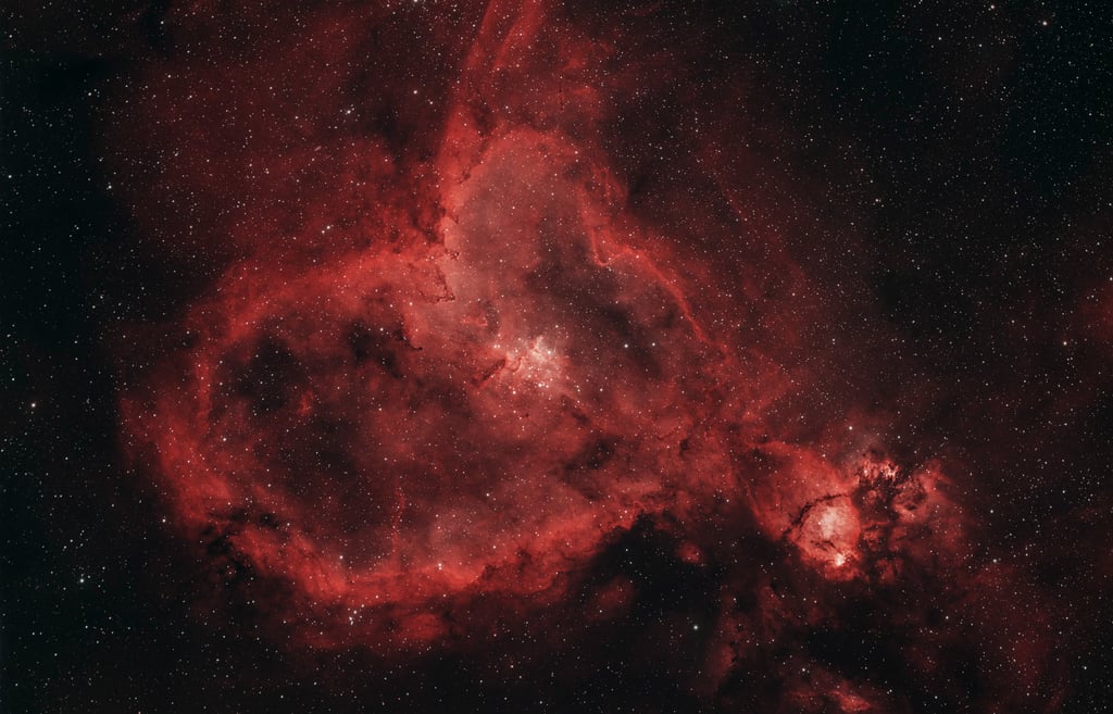 Voici IC 1805, surnommée la nébuleuse du Cœur, c'est une nébuleuse en émission située à environ 6 500 année-lumière.