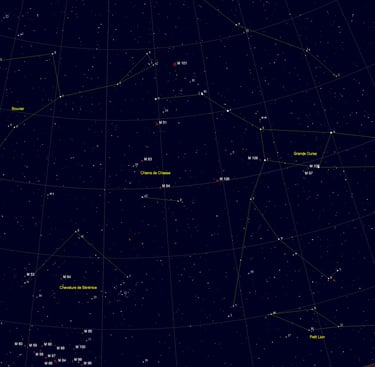 Distante de 25 millions d'années lumière, elle se situe dans la constellation des Chiens de chasse.