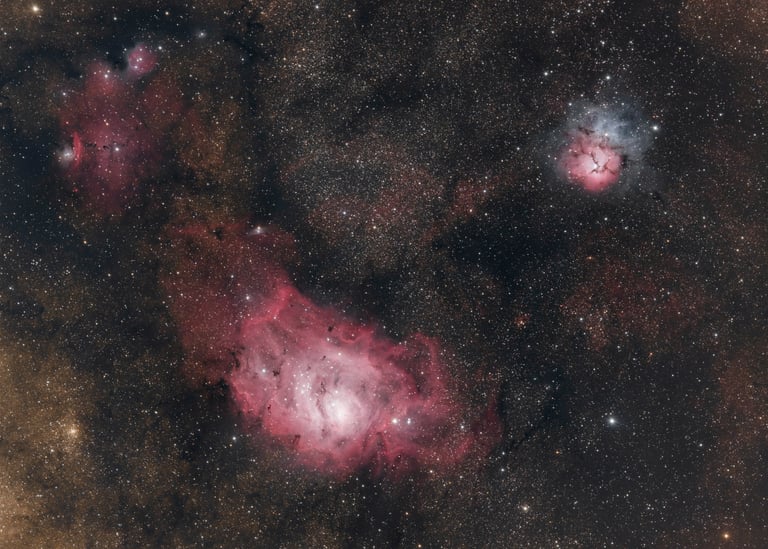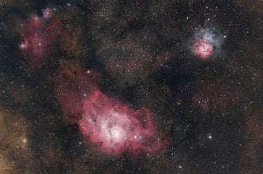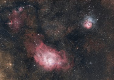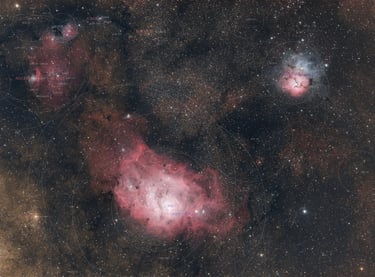 Un champ large présentant pas mal d'objets (nébuleuses en réflexion, en émission, sombre,...), mais M20 et M8 se démarquent.