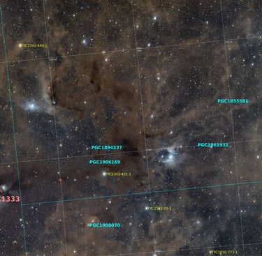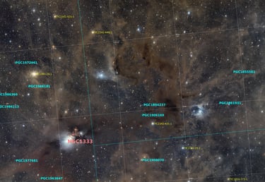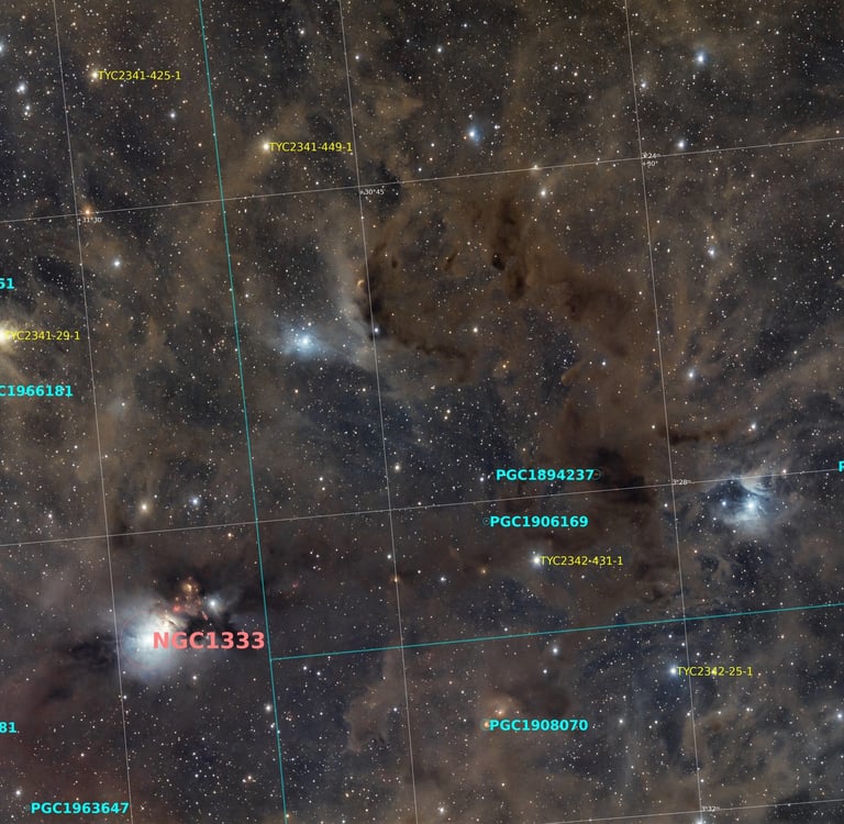 On y découvre NGC1333 (Vdb 17), une nébuleuse en réflexion distante d'environ 1000 années lumière, mais aussi Vdb 12 et 13.