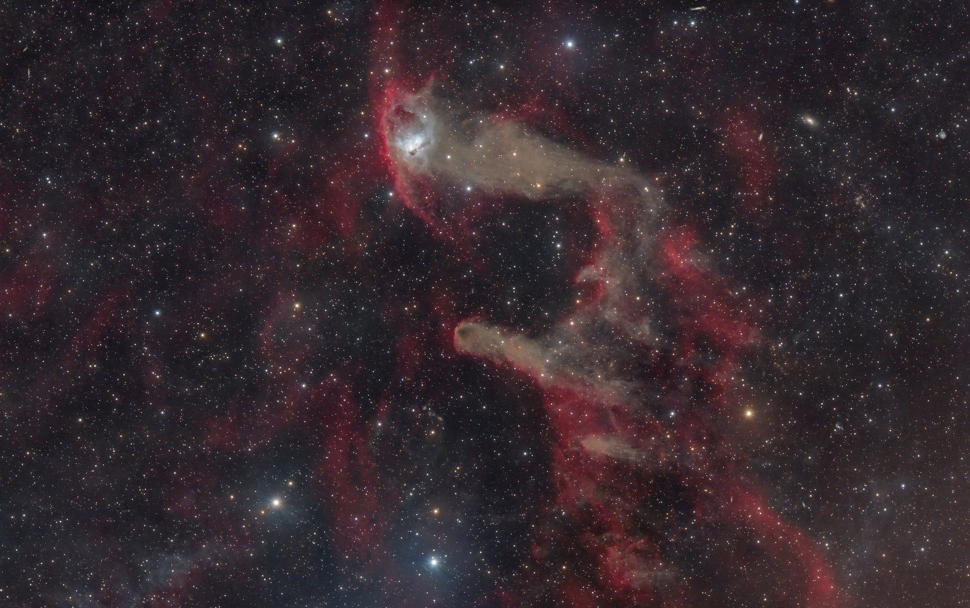 L'ensemble baignant dans de beaux nuages d'Hydrogène ionisé.
