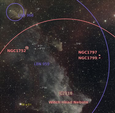 En effet cette nébuleuse en réflexion est reprise dans la constellation de l'Eridan !
