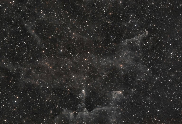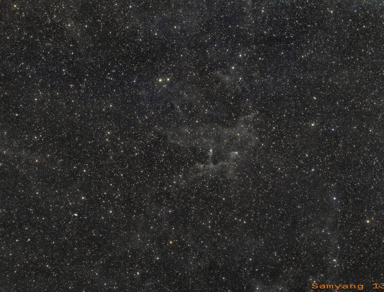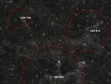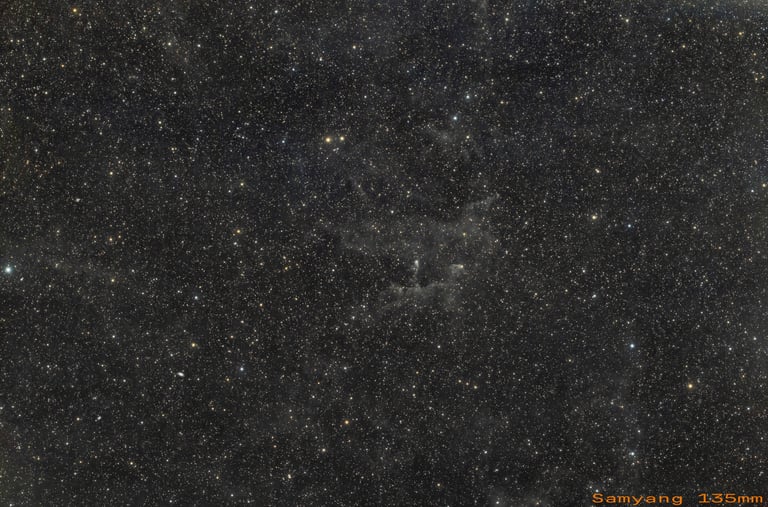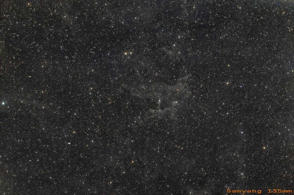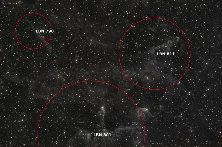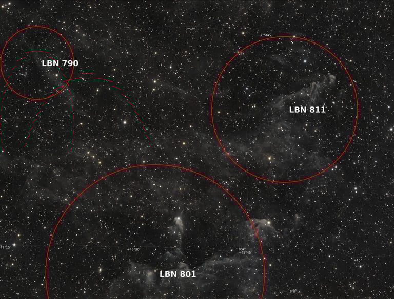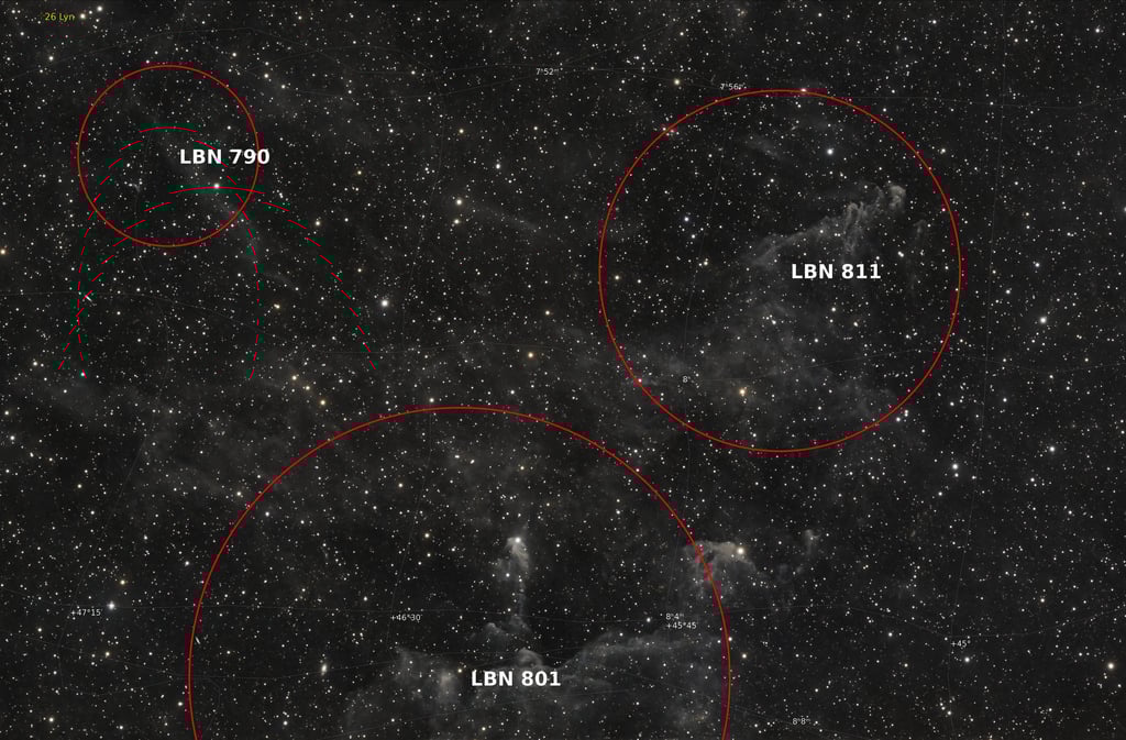 Haut dans le ciel, dans la constellation du Lynx, mon intérêt s'est porté sur des nuages répertoriés dans le catalogue LBN (Lynds Catalog of Bright Nebulae).